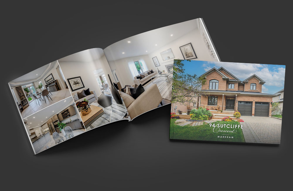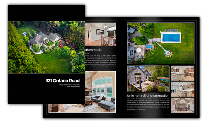 Ideal for properties requiring a significant amount of photographs and/or information such as floor plans to be shown in an elegant and tasteful way. Includes: Photography with photo enhancements, brochure layout, 50 printed copies on 10pt gloss cardstock.